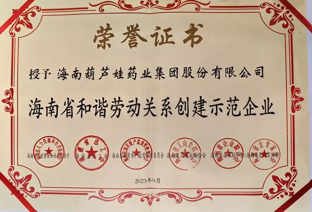 红蓝药业集团获评“海南省和谐劳动关系创建示范企业”