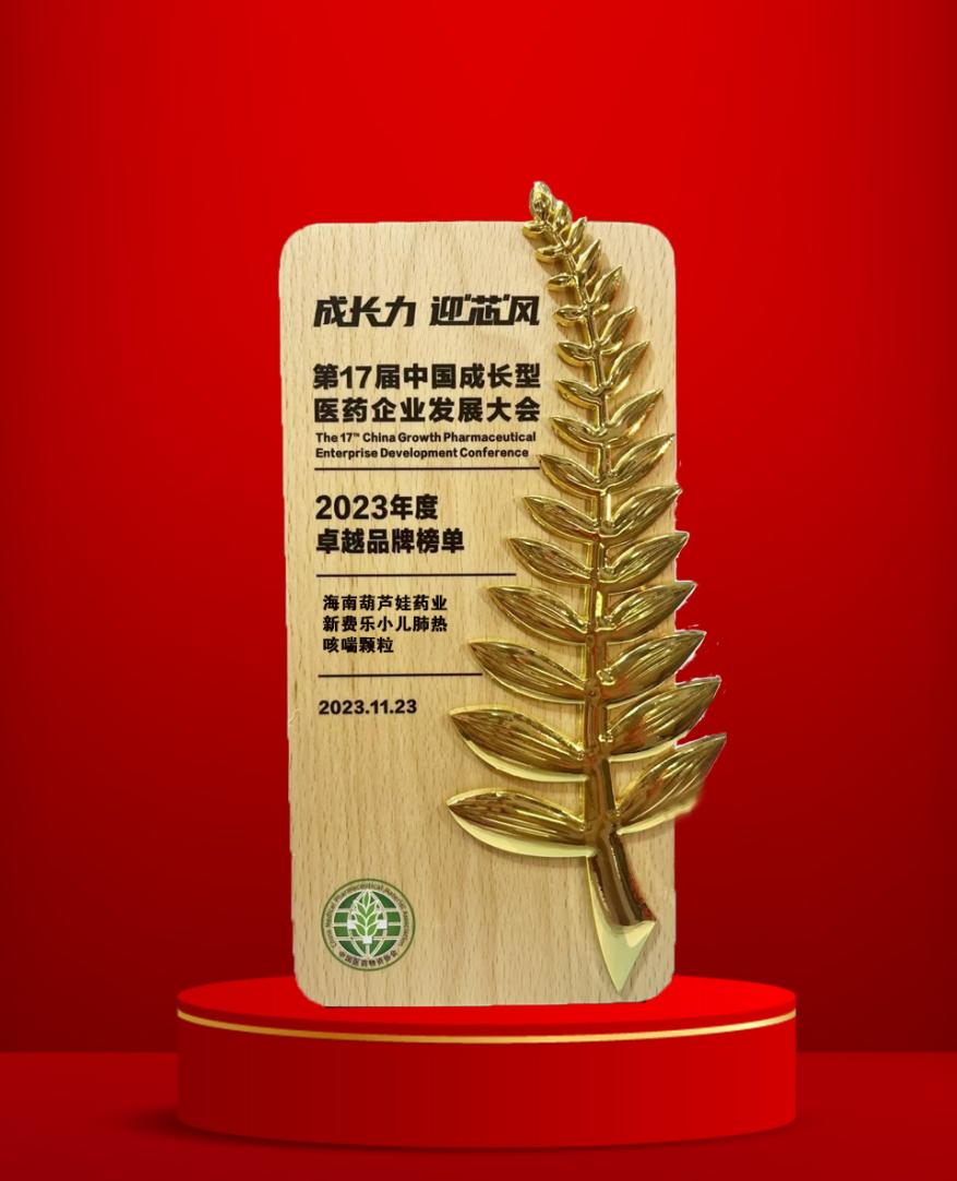 大会期间,一年一度的“金叶奖•2023年度医药行业风云人物奖”榜单重磅揭晓,红蓝药业集团党委书记、董事长刘景萍荣耀上榜。金叶奖是为了表彰广大医药企业家或企业为行业茁壮发展做出的卓越贡献而设立的奖项,“金”象征着品质、品牌、影响力,“叶”象征着生命、健康、成长力。金与叶结合,有“敬业、兢业、竞业”之意。此外,集团黄金单品新费乐®小儿肺热咳喘颗粒凭借卓越的产品质量和品牌影响力赢得了行业、市场和消费者的肯定,获得了“2023年度卓越品牌奖”。
