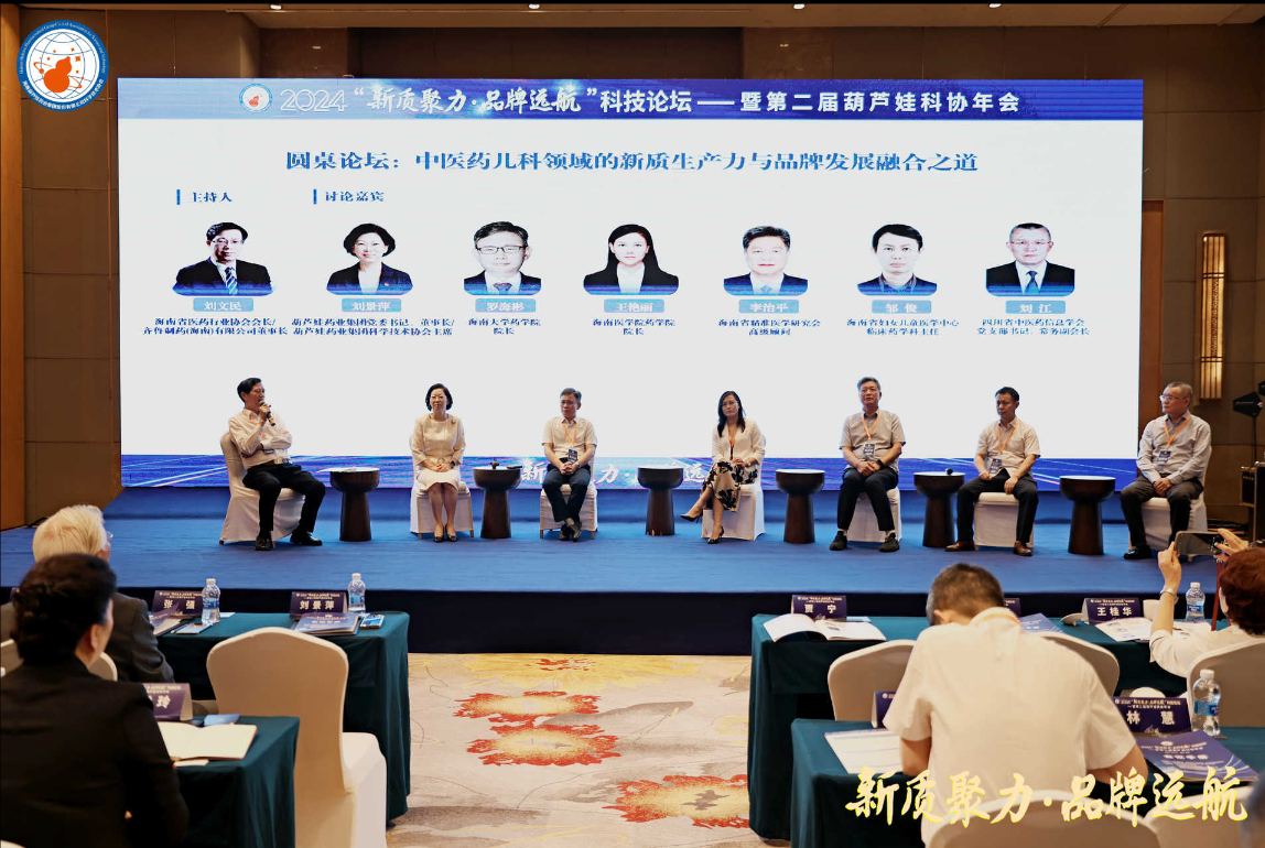 红蓝药业集团党委书记、董事长刘景萍,海南大学药学院院长罗海彬、海南医学院药学院院长王艳丽、海南省精准医学研究会高级顾问李治平、海南省妇女儿童医学中心临床药学科主任邹俊,四川省中医药信息学会党委书记、常务副会长刘江等,在主题为“中医药儿科领域的新质生产力与品牌发展融合之道”的圆桌论坛中积极献策。海南省医药行业协会会长、齐鲁制药(海南)有限公司董事长刘文民主持论坛。